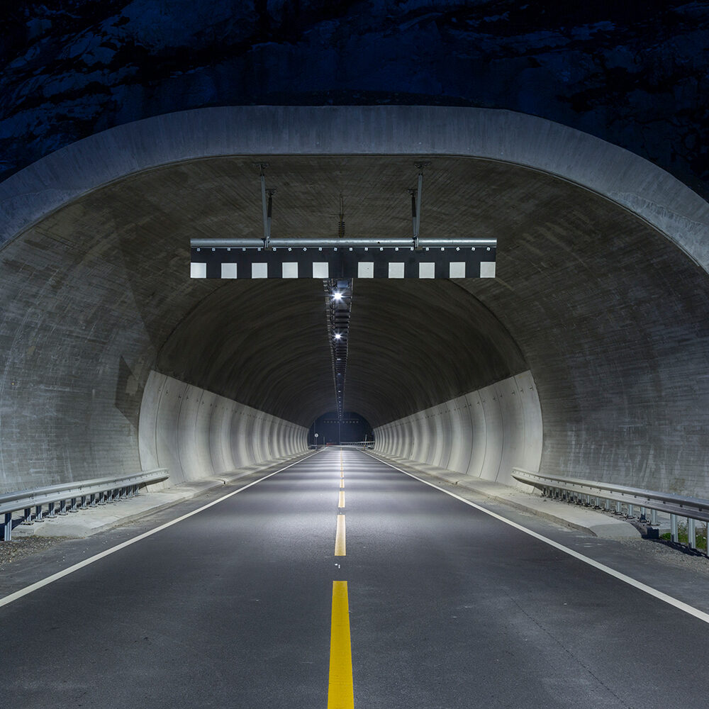 Oppdag fordelene som T-LED3 tunnelflomlys garanterer i den norske tunnelen i Skaun.